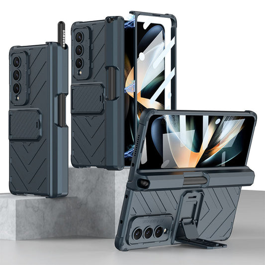 Magnetic Mech S Pen Slot Hinge Holder All-included Phone Cover For Samsung Galaxy Z Fold4 5G With Back Screen Glass Protector