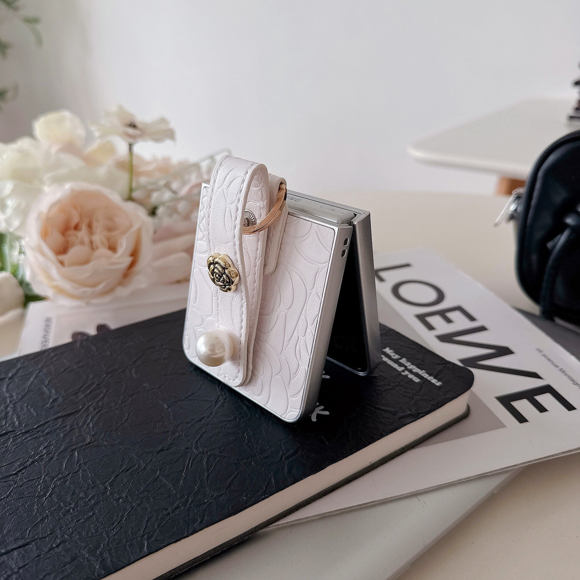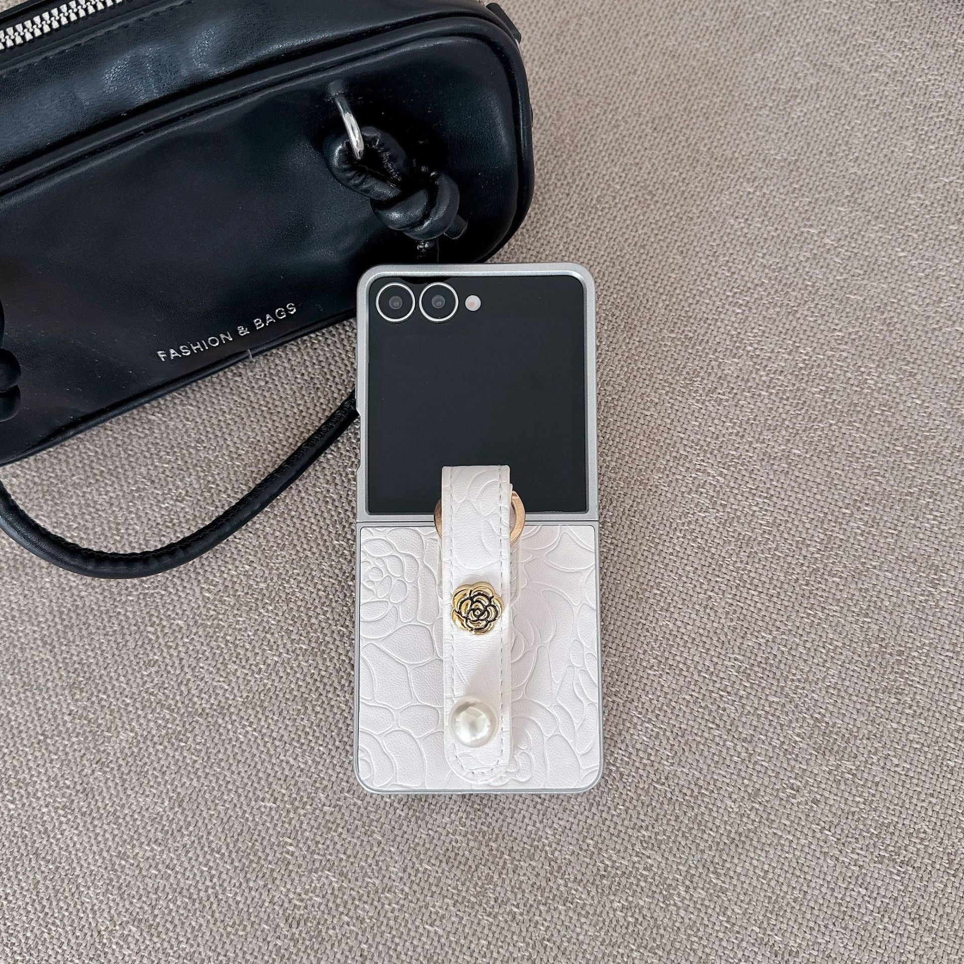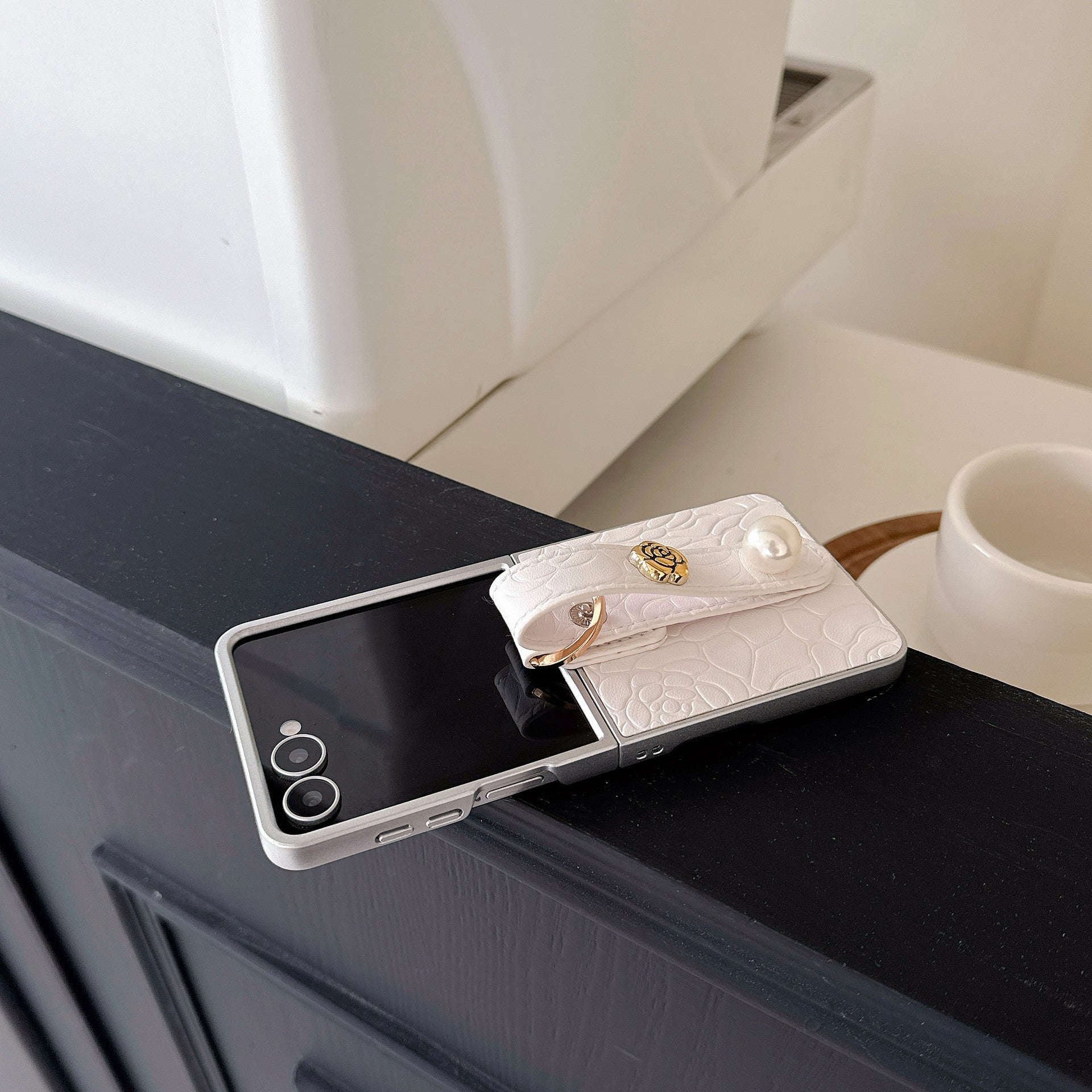 Titanium Luxury Pearl Wristband Phone Case For Samsung Galaxy Z Flip7/6/5/4